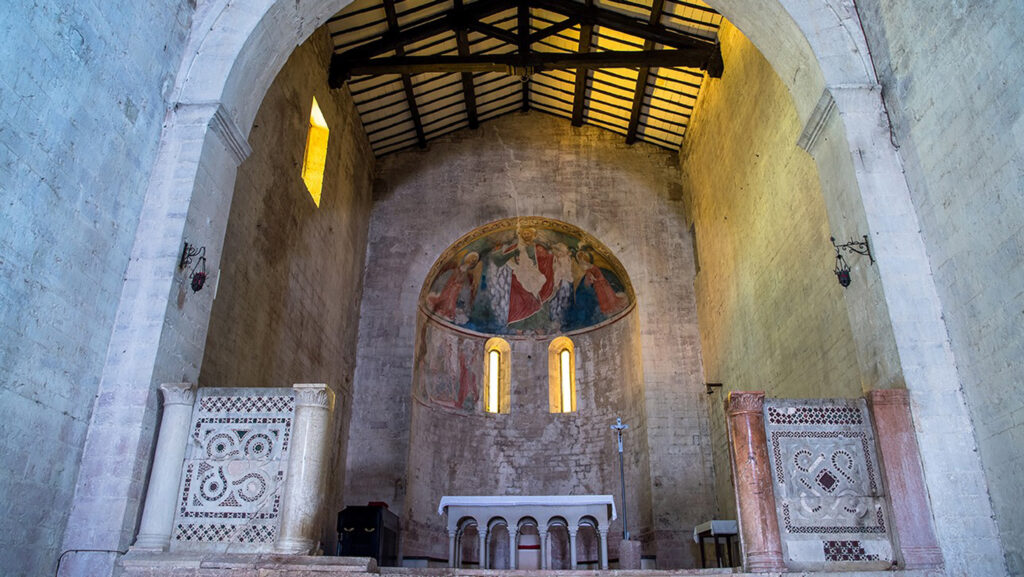 L’interno della chiesa si presenta ad unica navata con presbiterio sopraelevato, delimitato da plutei cosmateschi, e cripta in cui si conserva il sarcofago con all’interno il corpo di san Felice. Degni di nota gli affreschi ancora conservati, come “L’adorazione dei Magi” realizzata nella prima metà del XV secolo.