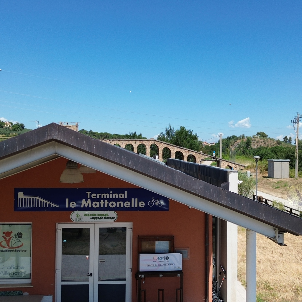 Il Terminal Le Mattonelle, situato tra le frazioni di Pontebari e San Nicolò, a Spoleto, è un punto nevralgico di questa rete ciclabile. Questo ex complesso industriale, risalente alla fine dell’Ottocento, è stato restaurato e trasformato in un moderno centro di servizi per ciclisti. Da qui parte uno dei tratti più accessibili e turistici, lungo 4,09 km, che conduce al cuore di Spoleto. Il percorso, interamente su strada asfaltata, presenta un dislivello di +109 metri e si percorre in circa 1 ora e 45 minuti, risultando di difficoltà turistica (T), quindi adatto anche ai ciclisti meno esperti. Lungo questo tratto, che segue il corso del torrente Tessino, ci sono numerosi punti panoramici e collegamenti con altri itinerari, tra cui il Raccordo Greenway Valle Spoletana.