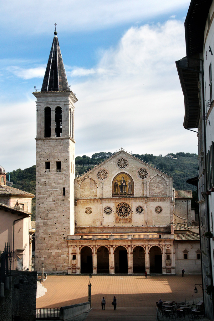 La costruzione del Duomo odierno fu avviata dopo il 1155, anno in cui Spoleto fu devastata dall’esercito imperiale di Federico “Barbarossa”, e terminò tra il XII e il XIII secolo, quando i Papi Innocenzo IIII nel 1198 e Onorio III nel 1216, consacrarono solennemente il nuovo edificio.