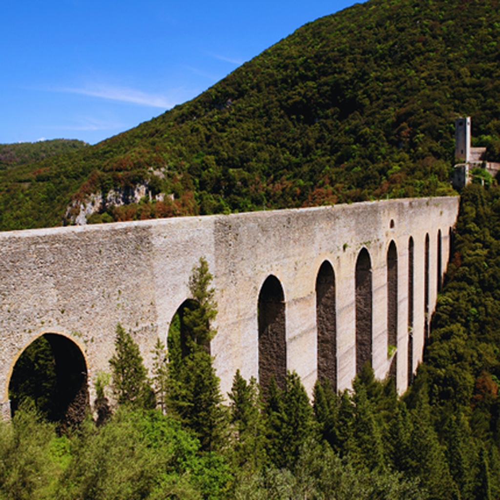 Da qui, percorrendo il “Giro della Rocca” si raggiunge il Ponte delle Torri, un maestoso acquedotto medievale che collega la città con l’area naturale del Monteluco, offrendo una spettacolare veduta sulle verdi colline circostanti.