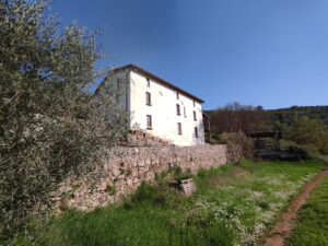 Nel prospetto sud dell’edificio vi è una loggia con scala pietra e mattoni a vista, struttura portante in legno e pavimento in cotto, mentre al piano terra vi è un acciottolato probabilmente frutto di ristrutturazione e integrazione di quello originario. Negli anni l’immobile è stato oggetto di opere di ristrutturazione, per lo più internamente, dove sono state mantenute ove possibile le caratteristiche originarie.